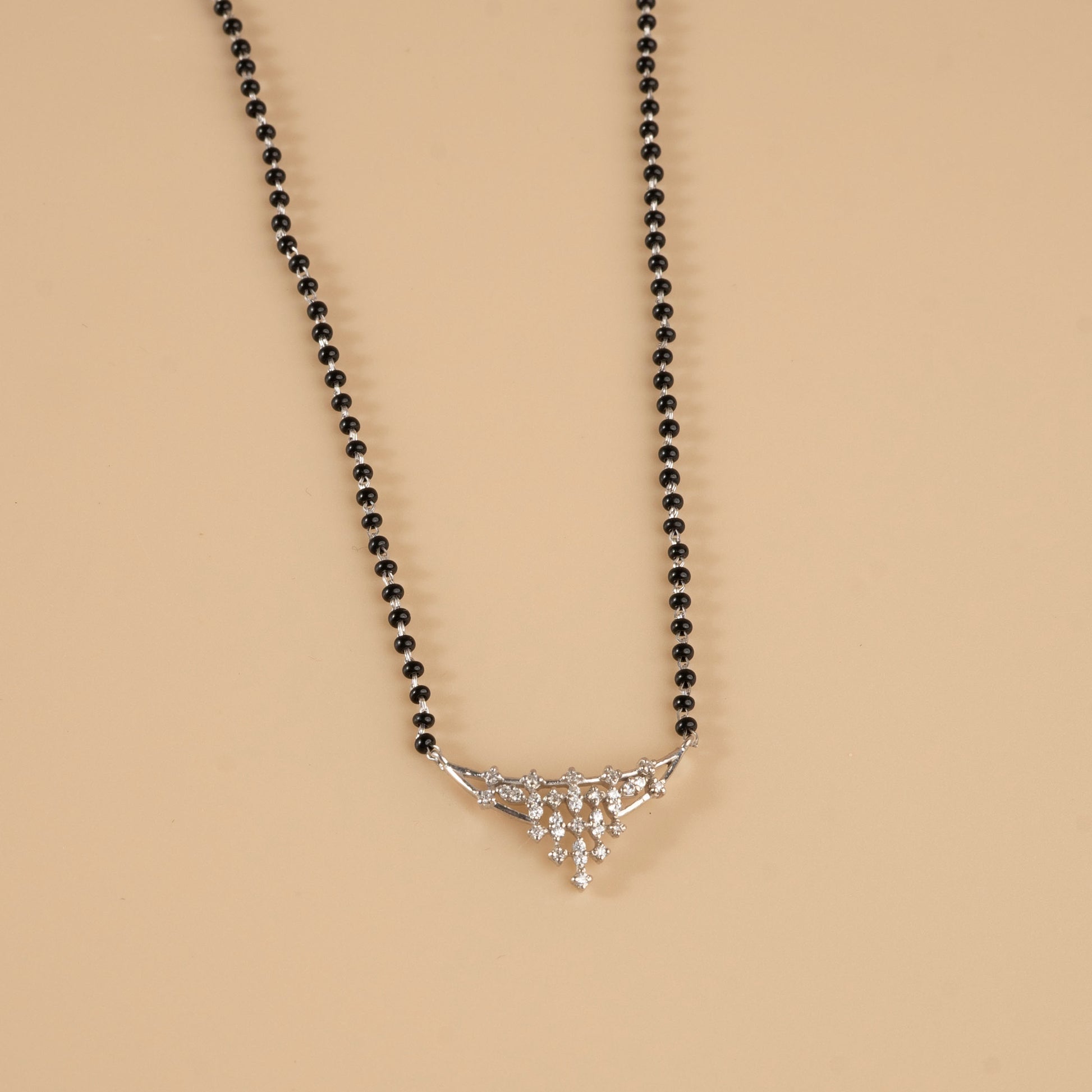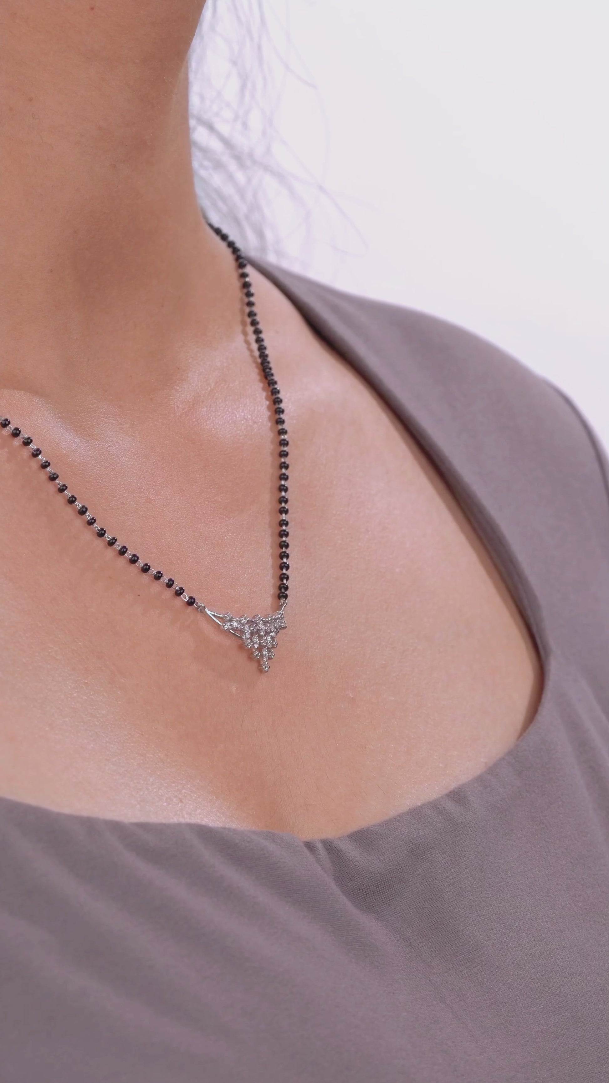 The Studded Silver Promise Mangalsutra beautifully captures the essence of commitment and devotion. Crafted in sterling silver, this elegant piece features a line of radiant studs symbolizing the strength of shared promises. A timeless design that shines with love, perfect for celebrating bonds that last a lifetime.